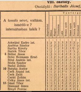 Véndiákok névsora