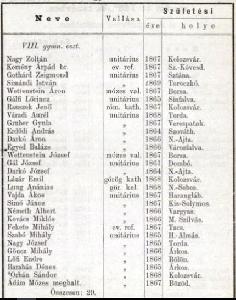 Véndiákok névsora