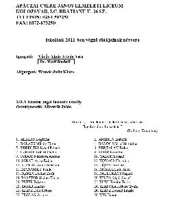 Véndiákok névsora
