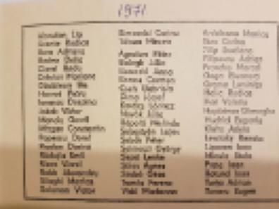 Sigismund Toduță Zenei Főgimnázium egykori diákjai 1971 12B