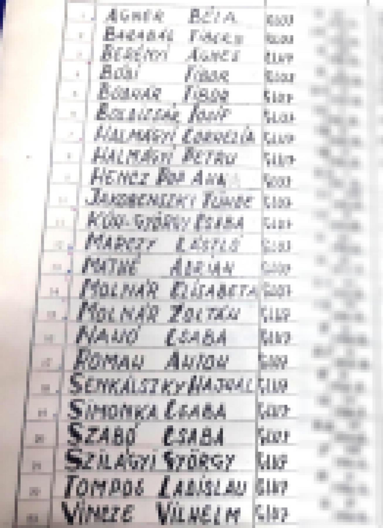Véndiákok névsora
