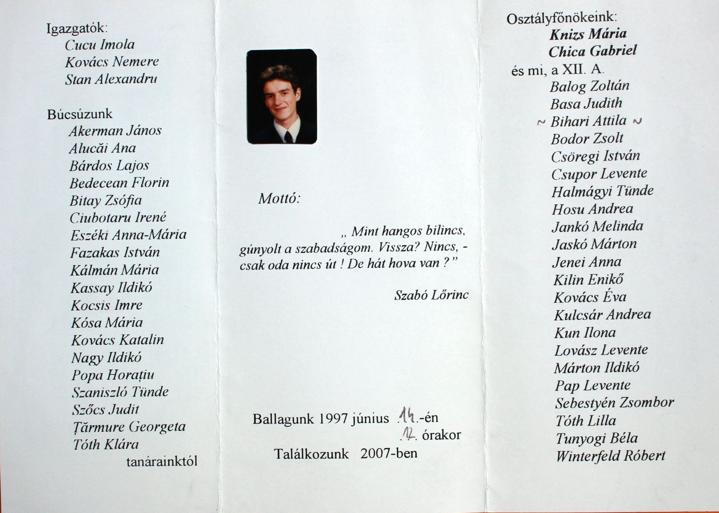 Véndiákok névsora