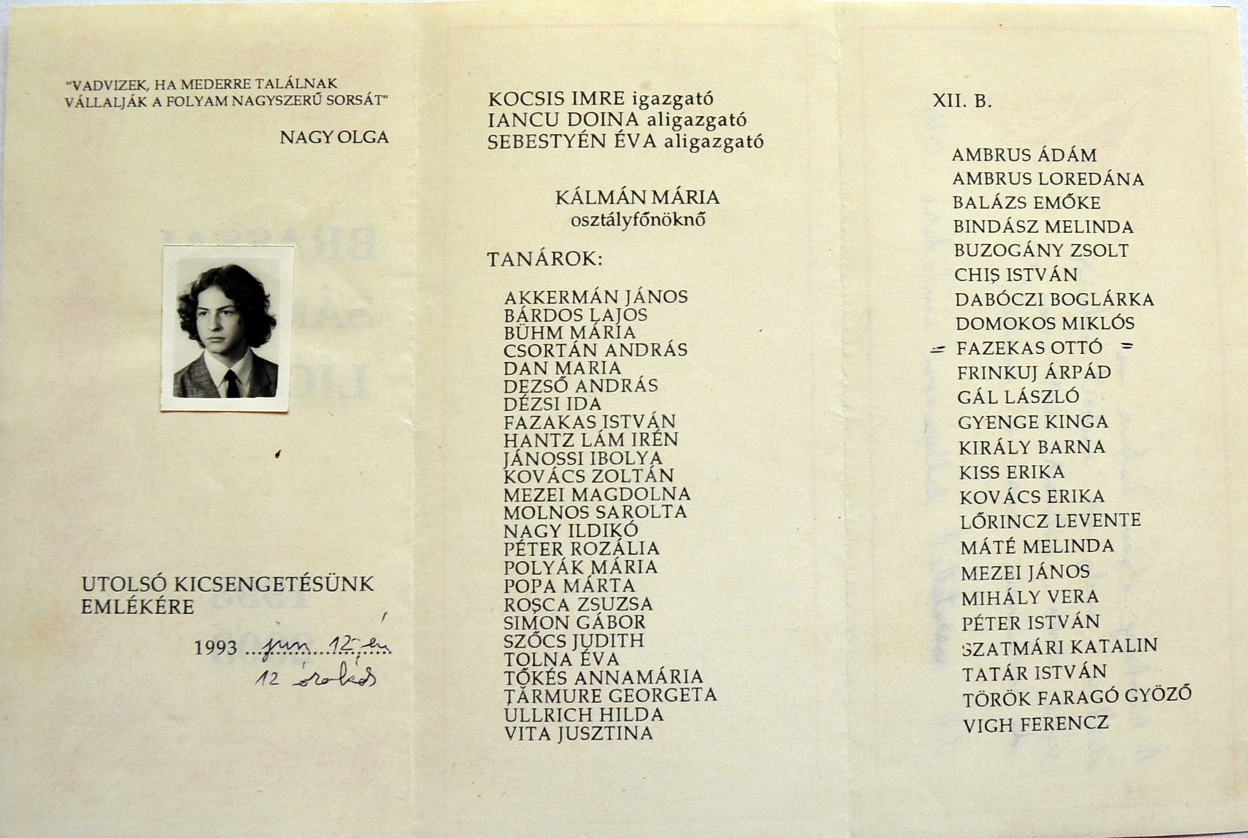 1993 XII.B kicsengetési kártya
