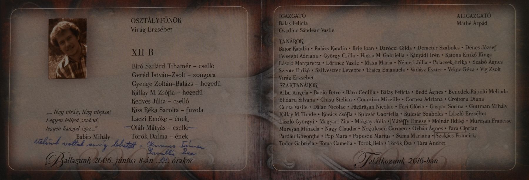 Sigismund Toduță Zenei Főgimnázium egykori diákjai 2006 12B