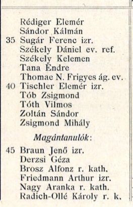 Véndiákok névsora